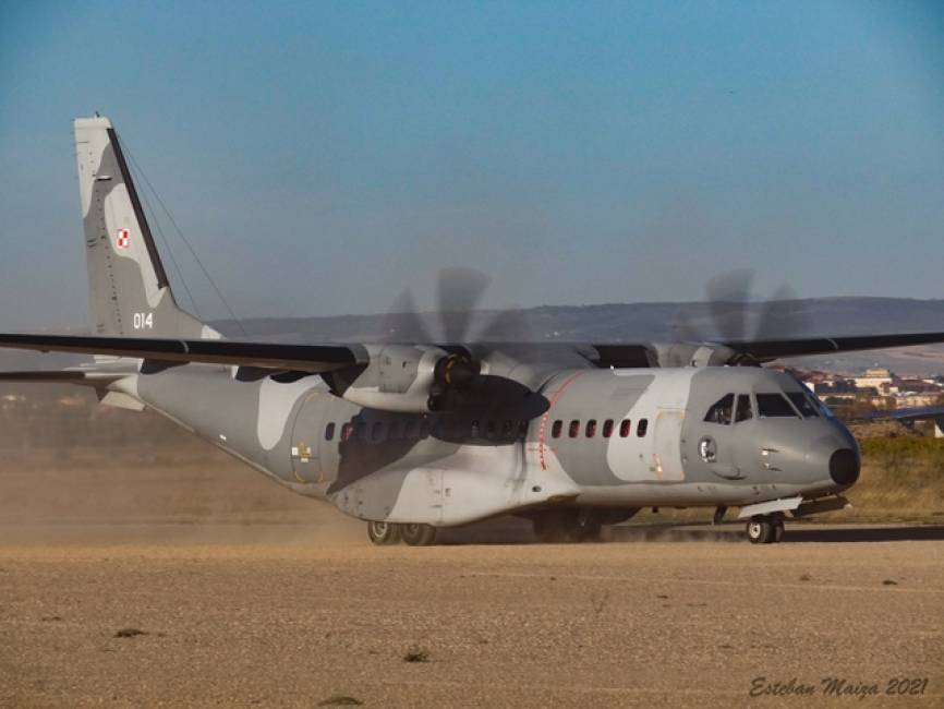 El C295 de la Fuerza Aérea Polaca rodando hasta el punto donde efectuará una infiltración de personal simulada.