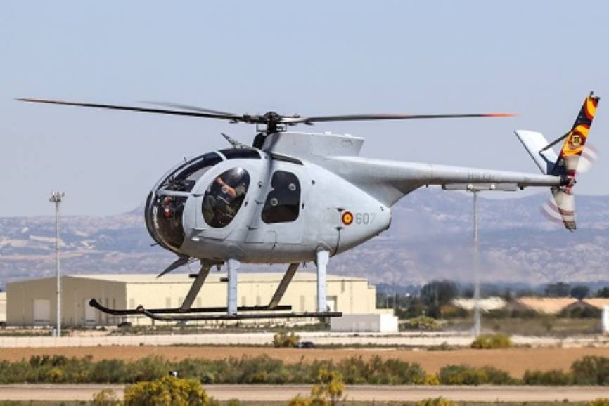 Dos veteranos Hughes 500 de la Armada también participaron en la parada aérea.