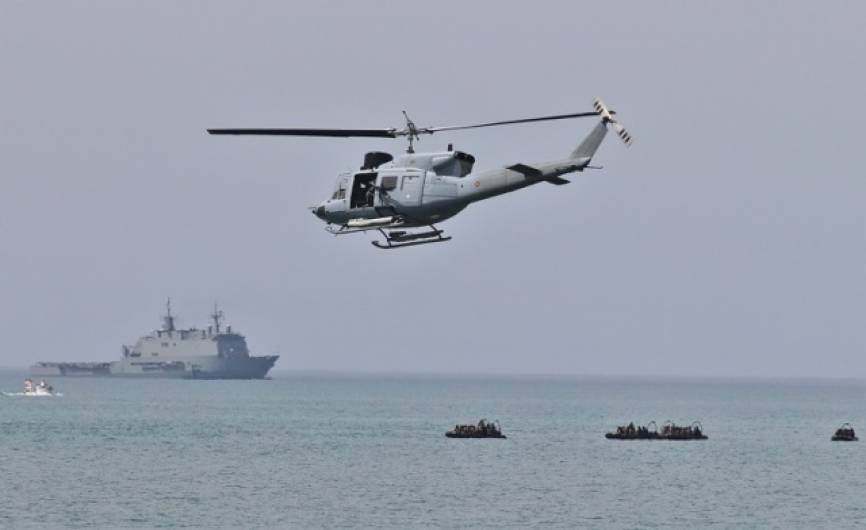 Previamente al desembarco un AB-212 infiltró a las fuerzas de reconocimiento de playa.