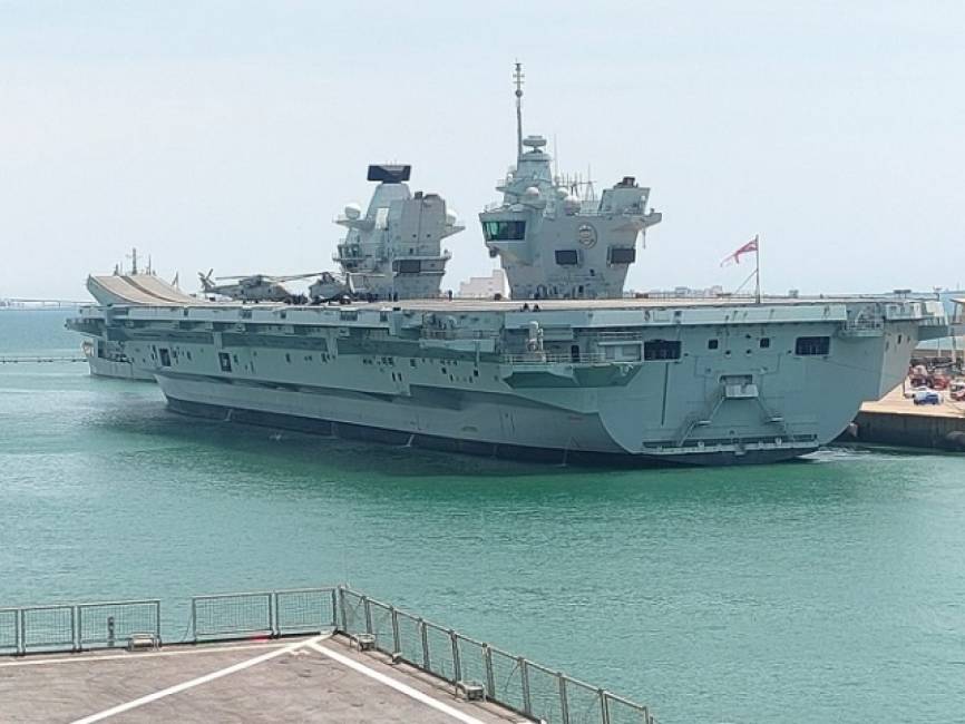 El mayor navío participante en el Flotex-22 es el portaaviones “Prince of Wales”, al que vemos en el puerto de la base naval de Rota (Cádiz).