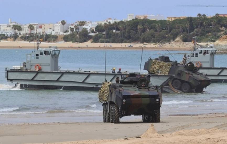 Blindados 8x8 “Piranha” y VAMTAC ST5 desembarcando desde las lanchas LCM1E.