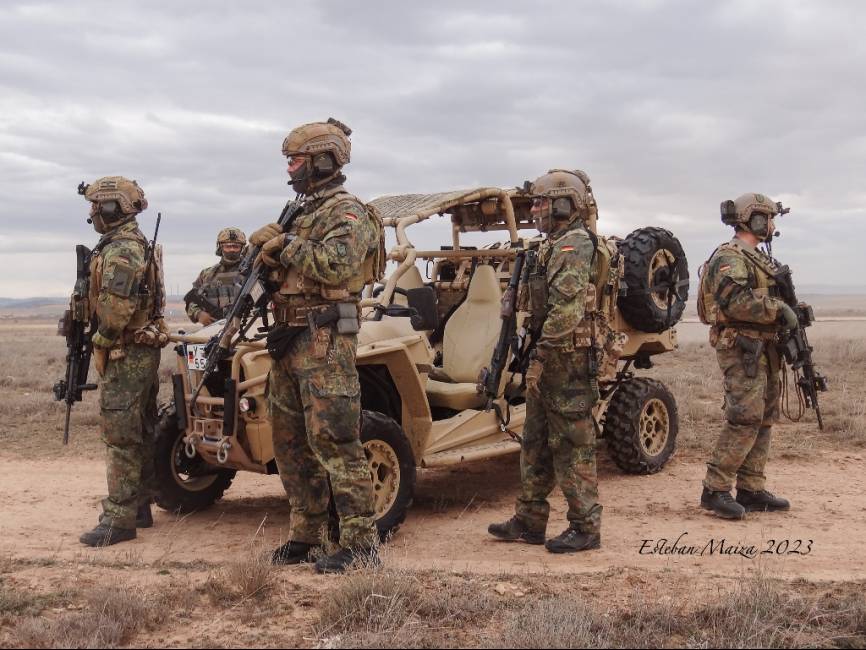El Air Mobility Protection Team alemán junto a su vehículo ‘Polaris’ MRZR, protagonistas de muchas misiones del curso.