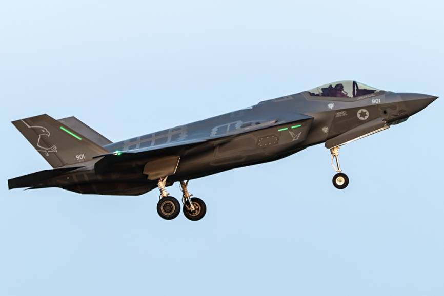 El F-35I matricula 901, que forma parte del 140 Escuadrón, el denominado “Golden Eagles”. (Foto Ruben Galindo)