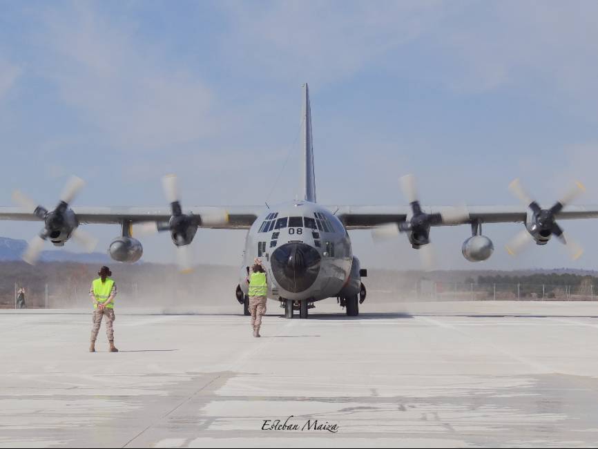 Un C-130H cortando motores por última vez el día que fue trasladado al aeródromo de Garray, el 25 de marzo de 2021.