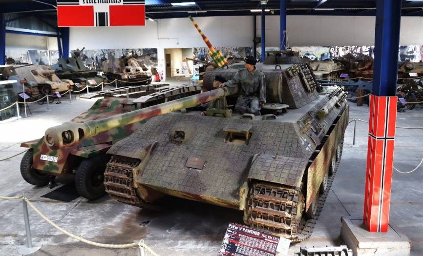 El otro “Panther” exhibido en el museo, es esté pintado con las marcas que le aplicó el Armée de Terre francés tras capturarlo.