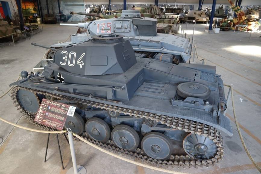 El más antiguo de los carros de combate alemán expuesto en Saumur es este Panzer II, pintado del denominado panzer grey usado en la primera fase de la SGM.