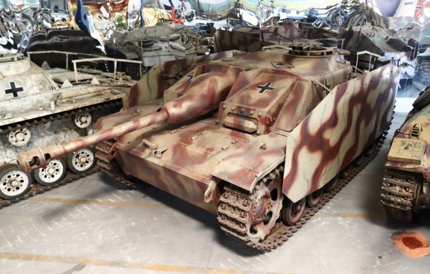 Aunque no es un carro de combate, este cañón de asalto Sturmgeschütz o StuG III, de sus versiones finales, merece atención por ser una modelo básico en la guerra acorazada durante la SGM.