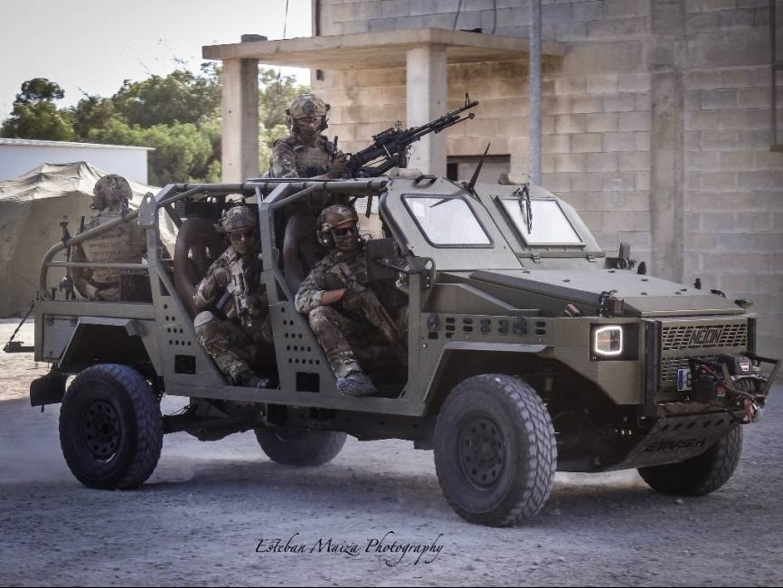 Un vehículo ligero de operaciones especiales ‘Neton’ abandonando la zona de combate.