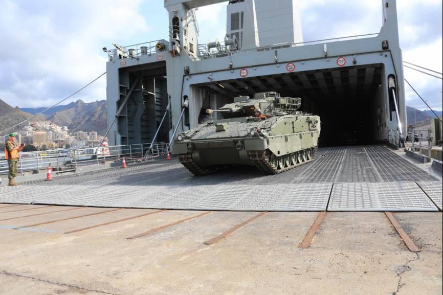 Imágenes de la llegada a Tenerife de los blindados y carros de combate que desfilarán el Día de las Fuerzas Armadas
