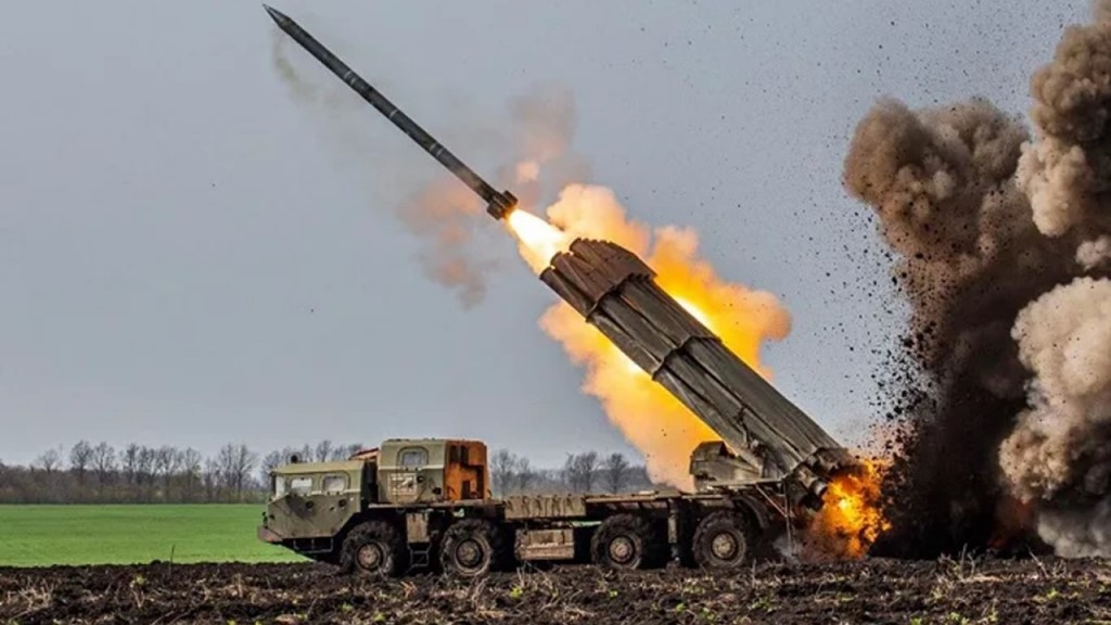El lanzacohetes MLRS B-30 Smerch (12 tubos / 300 mm) es una de las armas presuntamente empleadas en el ataque ruso a Selydovo.