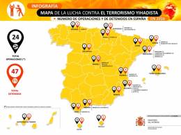 La página web del Ministerio del Interior incorpora por primera vez en su apartado “Lucha contra el terrorismo”, accesible desde la portada, dos infografías con el mapa de España detallando las provincias y localidades donde se han producido operaciones policiales contra la yihad. Se puede...