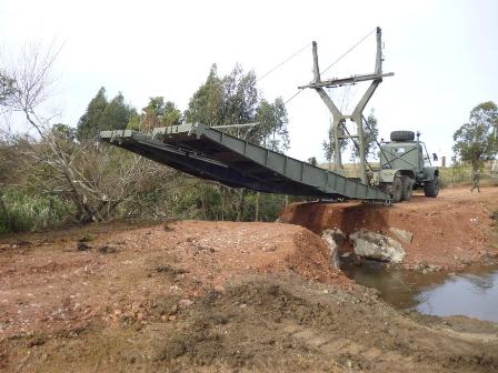 Los batallones de Ingenieros uruguayos cuentan con al menos un equipo de Puentes Ligero TMM-3 formado por 4 tramos de 10m de Puente, y 4 camiones KrAZ 255 6x6 de transporte, para cuya operación bastan 5 o 6 efectivos. (Javier Bonillla)