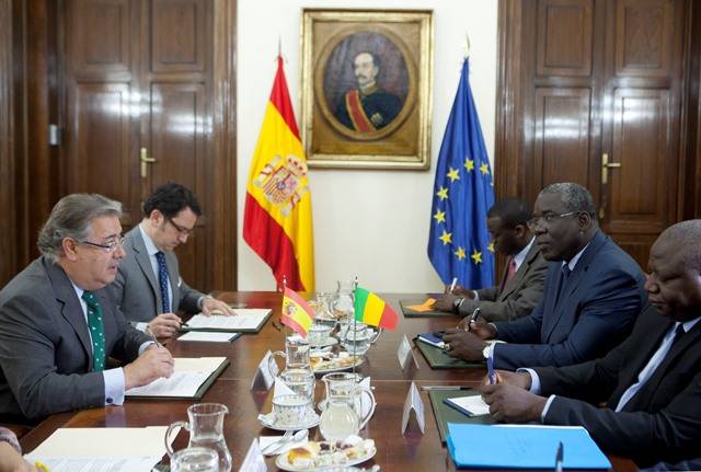 El ministro del Interior español, Juan Ignacio Zoido, se ha reunido en Madrid, con el ministro de Mali en el Exterior y de la Integración Africana, Abdramane Sylla. Durante este encuentro, en el que han abordado asuntos relacionados con la cooperación bilateral entre España y Mali, Zoido les ha transmitido que Mali es un país de interés prioritario para España así como el Sahel en su conjunto.