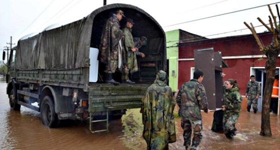En el departamento de Treinta y Tres, con más de 500 evacuados y los accesos rurales y buena parte de los urbanos destrozados , el Batallón “Treinta y Tres Orientales” de Infantería Mecanizada Nº 10 ha participado apoyando las emergencias con vehículos de Transporte y efectivos para la evacuación de familias y sus pertenencias, manteniéndose los medios e instalaciones de la Unidad disponibles para el Comité de Emergencia . (Javier Bonilla)