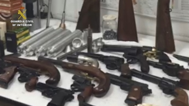 (defensa.com) La Guardia Civil, en el marco de la Operación Jacarás, ha detenido a ocho personas por tráfico y tenencia ilícita de armas, además de otros delitos. Se han realizado diversos registros en domicilios de Sabiñánigo, Huesca y Madrid en los que se han intervenido 35 armas largas, 17 armas cortas y una escopeta de cañones recortados, la mayoría ilegales al no poseer ningún tipo de documentación. Además se han encontrado 3 armas prohibidas (bastón estoque y pistolas taser) abundante munición metálica, más de 2.000 cartuchos, 8 silenciadores y 112.740 euros en metálico.