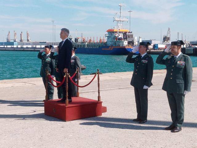 Así mismo, el ministro ha asistido a la entrega de la patrullera de la Guardia Civil “Río Arlanza”. El ministro del Interior ha señalado que “esta nueva embarcación va a integrarse en el Grupo Marítimo del Estrecho con sede en Cádiz, sumándose al buque oceánico ‘Río Miño’, y otra patrullera de altura de 30 metros”. “Aumentamos los medios, los recursos y los efectivos para garantizar la seguridad”, ha añadido Grande-Marlaska.