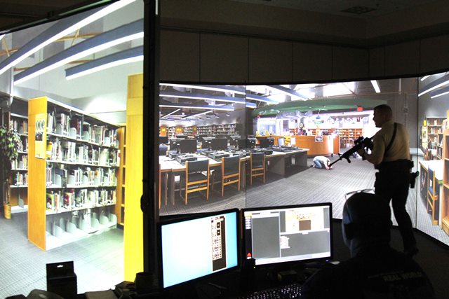 Un instructor, con unos equipos de control, supervisará las prácticas de los agentes catalanes que accedan al novedoso simulador ahora en licitación. (Octavio Díez Cámara)