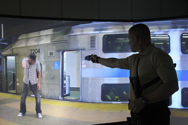 Se prevé que el equipo permita interactuar a agentes reales con otros captados previamente en vídeo, para así coordinar actuaciones y simular mejor las reacciones. (Octavio Díez Cámara)