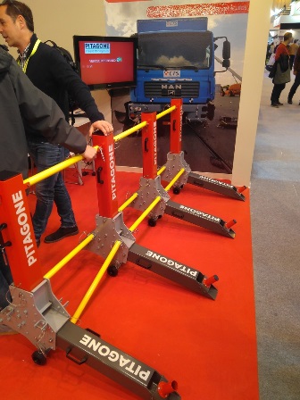 La empresa Uniformidad y Suministros de Protección (USP) expuso en su estand de la reciente feria de seguridad SICUR un novedoso sistema de protección en forma de barrera antiembestidas de la empresa belga Pitagone diseñado para absorber el impacto de un camión y detenerlo.