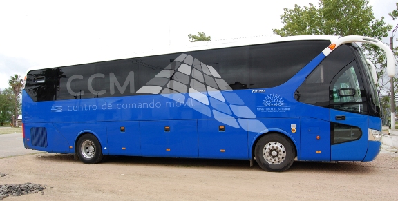 En el exterior, una amplia plataforma elevada, equipada con mástiles abatibles portadores de cámaras y sensores, le permite instalar un centro de video vigilancia avanzado y operar tanto de día como de noche. En su interior, 10 puestos de trabajo conectados en red permiten coordinar múltiples formas de operación policial y de emergencia.