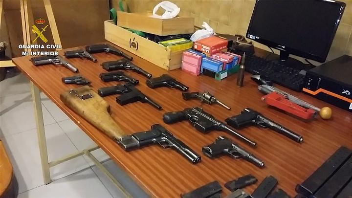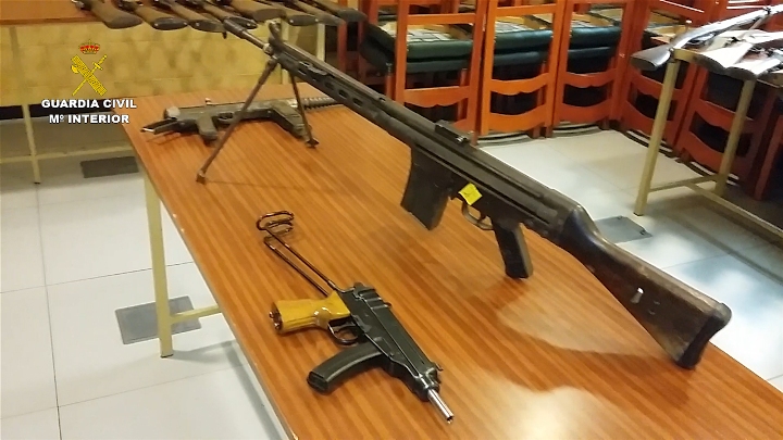 La Guardia Civil, en el marco de la operación ÓXIDO, ha detenido en la localidad de Camprodón (Girona) a dos personas por almacenar armas, artefactos explosivos y munición en sus domicilios particulares. Están acusados de un presunto delito de depósito de armas y munición. Los detenidos eran los titulares de la asociación de interés cultural “La Retirada”, sita en la misma localidad y que sirve como museo sobre la guerra civil española. Las armas incautadas no procedían de la colección expuesta en el museo “La Retirada” y algunas de ellas tenían la numeración borrada y modificada, por lo que se encuentran en estudio para analizar su procedencia.
