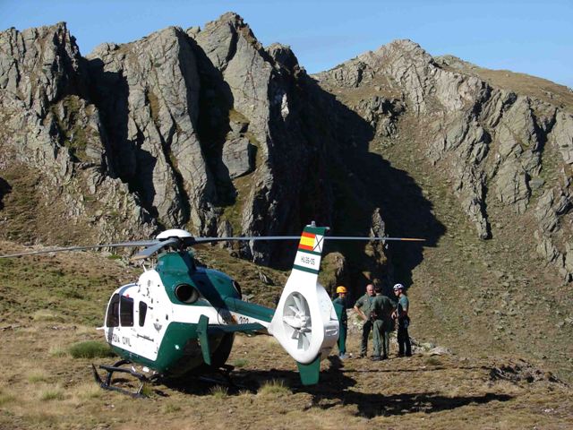 Asimismo, el Servicio cuenta en todas sus intervenciones, siempre que sea necesario, con el apoyo de las Unidades del Servicio Aéreo de la Guardia Civil, siempre presto a actuar con sus helicópteros Airbus Helicopters Bö-105 y los más modernos EC135 en los rescates en montaña. (Julio Maíz Sanz)