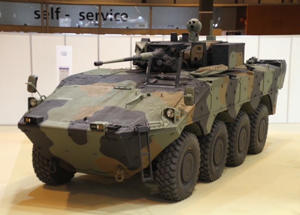 Freccia y Piraña V acapararon gran protagonismo en el salón. Volviendo al Freccia, reseñar que se trata de un vehículo en servicio del Ejército italiano dotado de una torre HITFIST de Oto Melara, en su versión OWS (Overhead Weapon Station), que permite dejar todo el amplio interior del 8x8 para transportar infantes. El fabricante italiano nos recuerda que estamos ante un vehículo de combate en servicio, que ha pasado por el duro test de participar en el conflicto afgano.