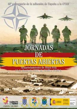 Dentro de las actividades organizadas con motivo de los 40 años de la entrada de España en la OTAN (1982-2022) se ha organizado una jornada de puertas abiertas para el próximo sábado 11 de junio en el Acuartelamiento “Hoya Fría”.