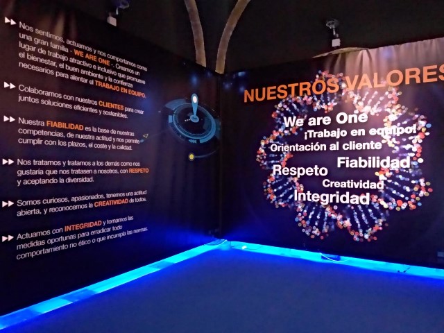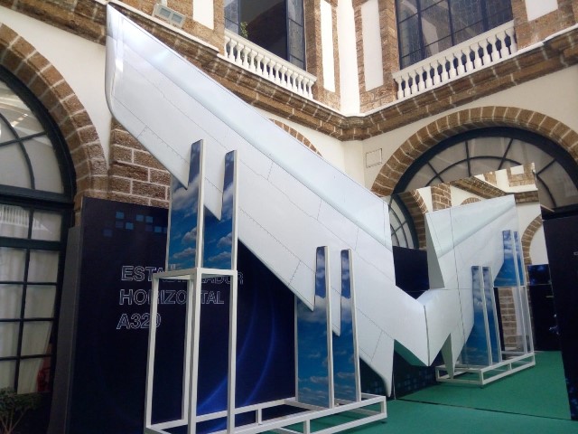 La exposición, que estará abierta hasta el 19 de octubre, está organizada en torno a cuatro áreas. En la primera, denominada “Nuestros Valores” se explican los valores internos de la compañía, destacando el modo en el que trabajan la plantilla, incluyendo un vídeo ilustrativo. En otra zona se dan a conocer los inicios de la compañía en Cádiz que se encuentran en la planta de Construcciones Aeronáuticas (CASA) en Puntales y que es el origen de las dos plantas de Airbus en Cádiz como son la de Puerto Real y la de El Puerto de Santa María. En el área denominada “Nuestro presente” se muestra una cabina de un avión que permite en su interior conocer los diferentes productos fabricados en las plantas de la Bahía de Cádiz. También encontramos una reproducción de un motor y un estabilizador de cola. El futuro queda de manifiesto en un área dedicada a las nuevas tecnologías como los aviones in piloto, los robots, la fabricación mediante impresión tridimensional o el uso de realidad virtual.