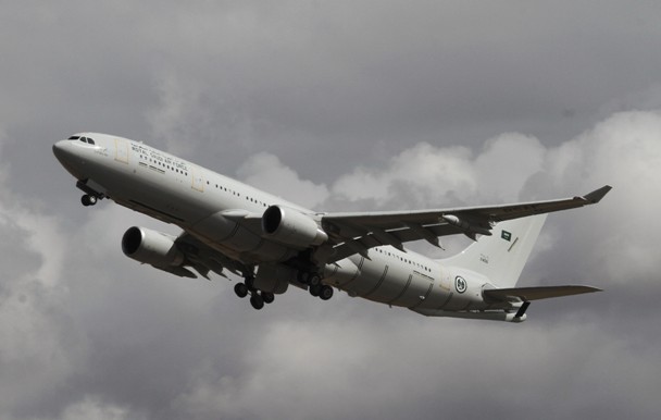 ·El sexto y último de los A330-200 MRTT de las Royal Saudi Air Force despegando desde las instalaciones de la empresa Airbus Defence & Space de Getafe con destino a la que será su base habitual, la de Príncipe Sultan. (Julio Maíz Sanz)