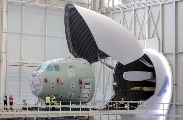 Fotografía: Entrega de la parte delantera del MSN104 destinado a Luxemburgo en San Pablo. (foto: Airbus DS).