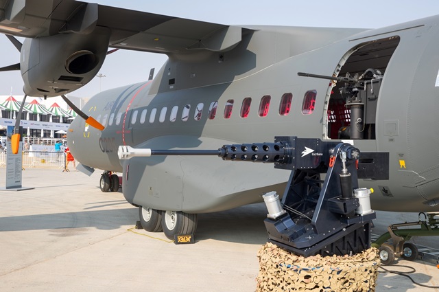 Airbus DS exhibía un C295W con matrícula provisional española EC-025 dotado de dos afustes de ametralladoras en lugar de las puertas traseras para salto de paracaidistas. Se trata de ametralladoras de 12,70 mm. pero no las habituales M-2 de diseño belga, sino de las modernas M3D o M-50 Dragon suministradas por la estadounidense US Ordenance con más de 1.000 proyectiles de empleo inmediato por arma. Ambas armas se ubican sobre afustes manuales orientables de la familia Viper de la empresa estadounidense Nobles Worldwide que pueden montarse y desmontarse según la misión.