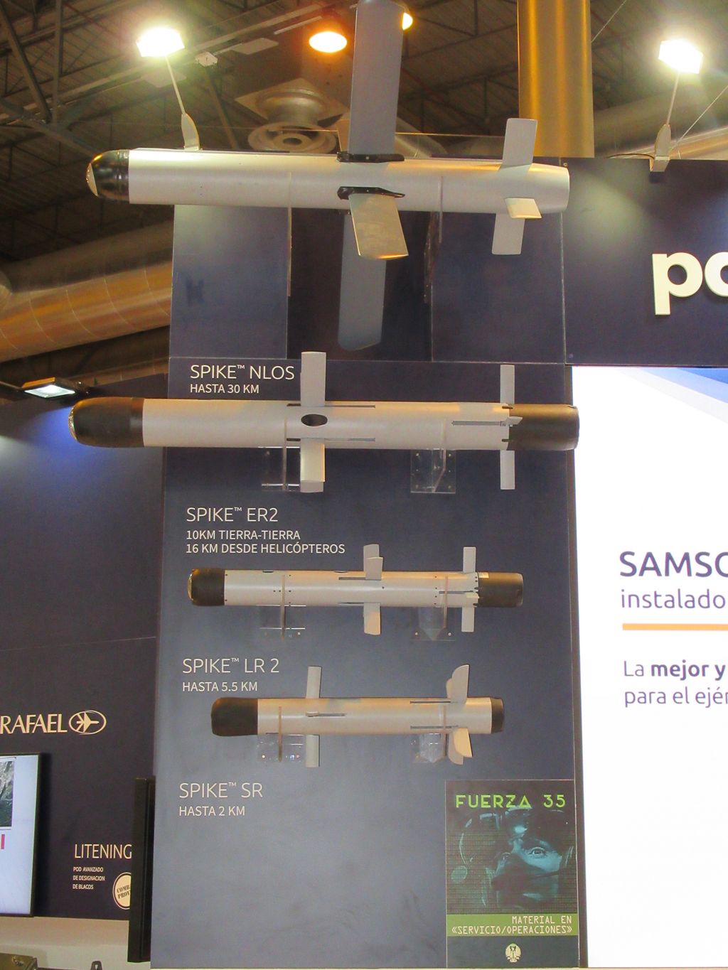 Misil Spike NLOS (parte superior) en el stand de Rafael en la reciente feria FEINDEF (autor)