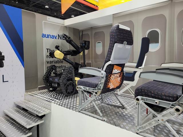 aunav, la marca especializada en soluciones de robótica de everis Aeroespacial, Defensa y Seguridad (everis ADS) presenta en IDEX 2021 su nuevo robot de desactivación de explosivos, el aunav.NEO, que destaca por ser el único del mercado dotado de un sistema de geometría variable. Esta tecnología permite aumentar o reducir el ancho del robot durante las misiones para adaptarse a espacios diversos, como por ejemplo pasillos de avión o autobús.
