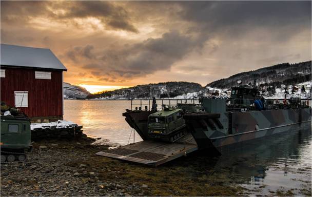 ·Vehículos Bv 206D6 holandeses desembarcando desde una lancha durante el ejercicio Cold Response 2014 que la OTAN llevó a cabo en territorio noruego (Ole-Sverre Haugli, Fuerzas Armadas noruegas).
