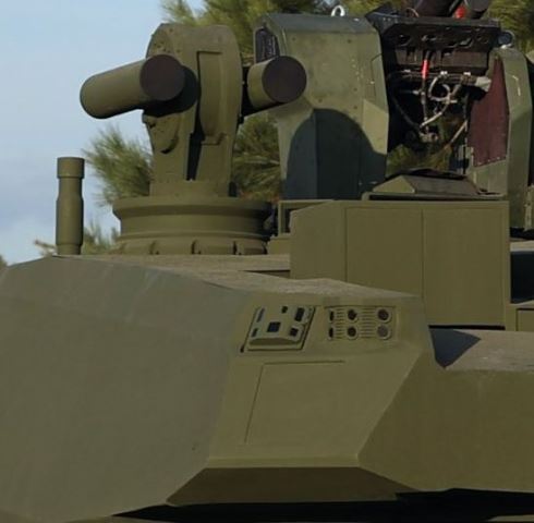 Presentación conceptual del Altay con el sistema Akkor. Entonces aparecían dos lanzadores dobles de artificios. (Aselsan)