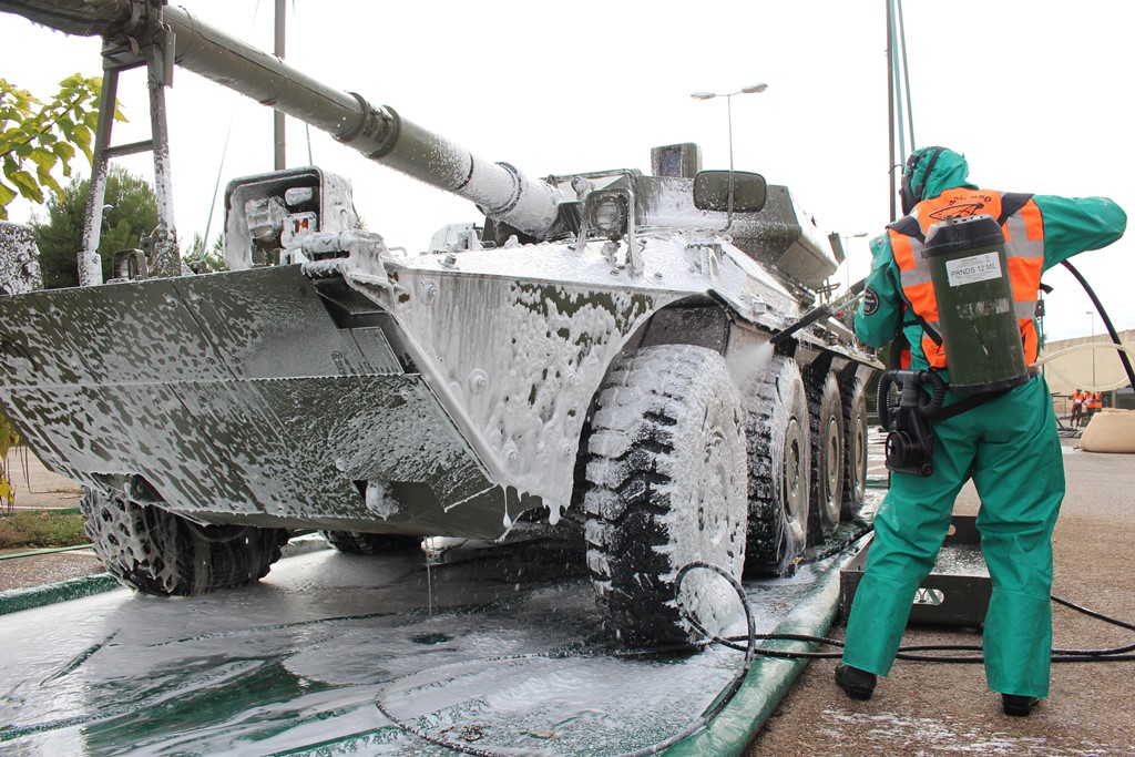 Tareas de descontaminación de un vehículo Centauro (Ejército de Tierra)