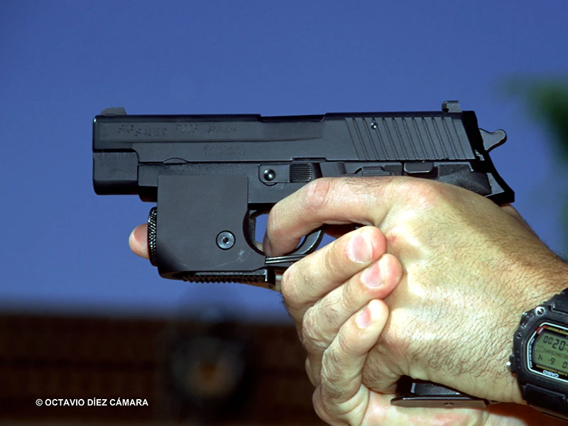 La pistola P226 es un arma especialmente sólida y fiable, aunque no era nada económica de adquirir en un entorno con muchas otras más baratas. Foto: Octavio Díez Cámara