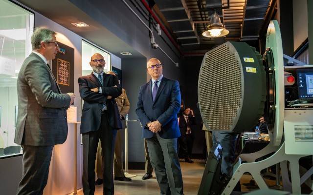 Asimismo, recorrió los laboratorios en los que se fabrican y prueban los bloques o tiles que conforman la base del radar en banda S de la futura fragata F110. A partir de ellos se construirá un radar digital multifunción de última generación, que permitirá a este buque operar como si dispusiese de varios radares trabajando simultáneamente. Podrá, de este modo, explorar el espacio aéreo a larga distancia, mientras fija al mismo tiempo el seguimiento de múltiples blancos cercanos, entre otras ventajas.