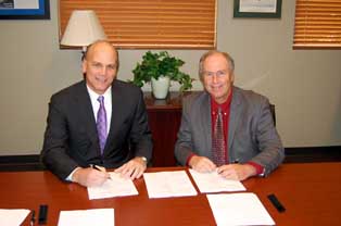 FOTO: A la izquierda, Gary Spulak, presidente de Embraer Aircraft Holding, con Steve Grossman, director ejecutivo de la Autoridad Aeroporutaria de Jacksonville.