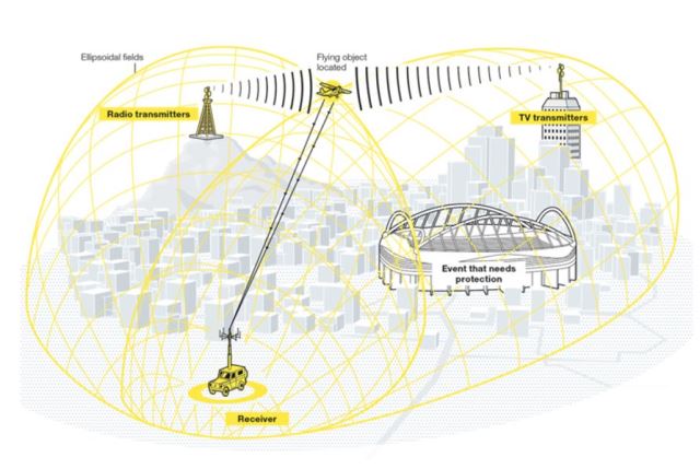 El radar pasivo Twinvis de Hensoldt funciona según el principio de localización coherente pasiva, o PCL (Passive Coherent Location) y, como su nombre indica, es un verdadero sistema de sensor pasivo. El término pasivo enfatiza que el sistema consta de un receptor, pero no tiene un transmisor propio. La iluminación de los objetivos se realiza preferentemente desde los llamados transmisores de oportunidad no cooperativos. Esto supone el uso de estaciones de transmisión de radio o televisión ya existentes, generalmente públicas. Muchas áreas en todo el mundo tienen suficiente cobertura de transmisores de oportunidad, es decir, transmisiones VHF y UHF de radio analógica FM, así como transmisiones de radio y televisión digital DAB/DVB-T.