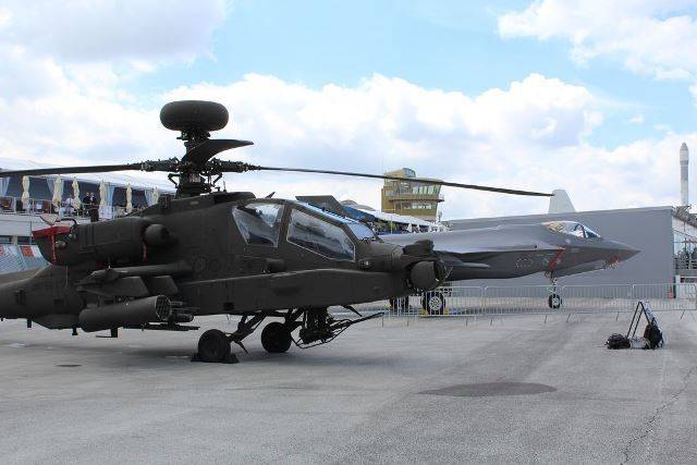 Fotografía: Helicóptero Apache y avión de combate F-35, dos productos estadounidenses (Miguel Martínez)