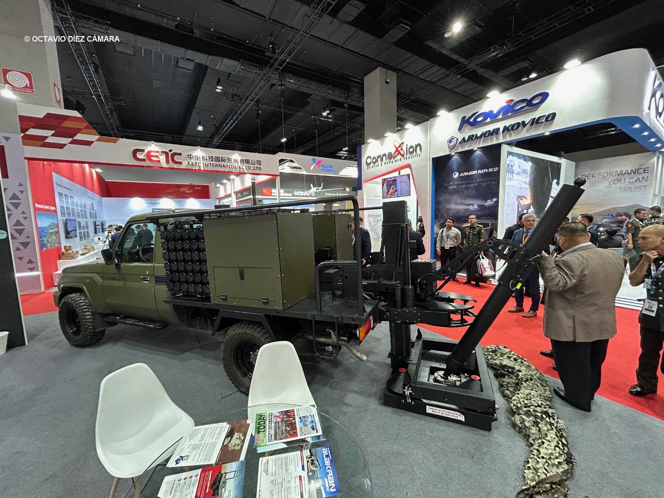 Durante DSA pudimos ver cómo una delegación del más alto nivel de la Policía de Malasia conocía el funcionamiento del sistema porque podrían tener interés en incorporarlo a sus arsenales. Alakran es un sistema de portamortero embarcado que se exponía en su configuración más potente que cuenta con un tubo pesado de 120 mm. pero que, con facilidad, puede adaptarse para poder emplear también uno de tipo medio de 81 mm.; la posibilidad de optar por una u otra configuración le brinda un carácter único y unas posibilidades operativas que los competidores no tienen.