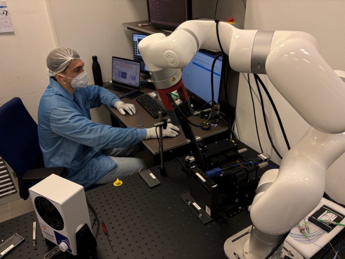 Estación automatizada para la medición de diagramas de radiación operada por personal de AGphotonics, basada en el uso de un brazo robótico que incrementa la capacidad de caracterización de wafers completos (AGPhotonics)