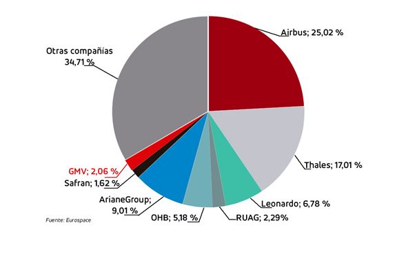 Si bien son tres los grandes grupos industriales directamente responsables de cerca de la mitad del empleo total (Airbus, Thales y Leonardo), compañías como GMV generan cada vez más empleo y capacidades adicionales a la industria espacial europea, sector que registró en 2019 unas ventas totales de 8.756 millones de euros (lo que supone un incremento del 2,6%).