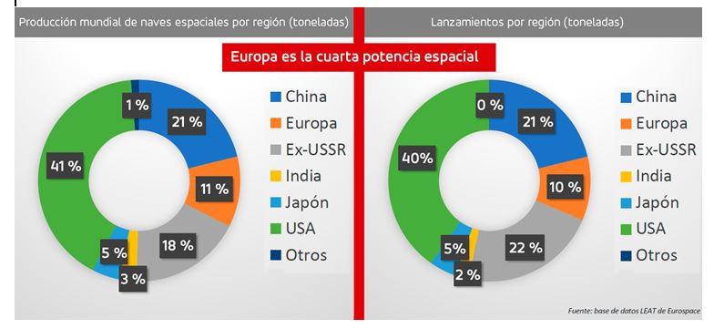 Si nos detenemos en la actividad espacial mundial entre 2015 y 2019, Estados Unidos se posiciona en primer lugar. China disputa en estos momentos a Rusia la segunda posición y Europa es la cuarta potencia espacial.