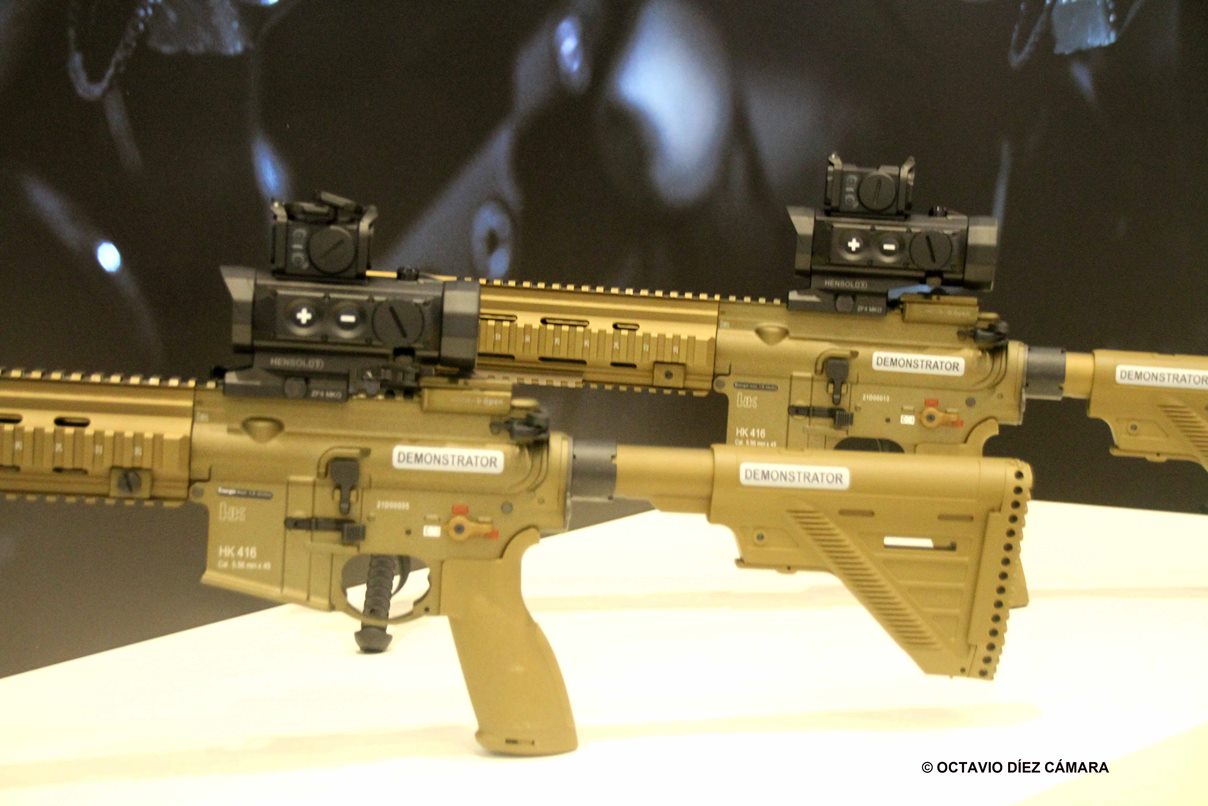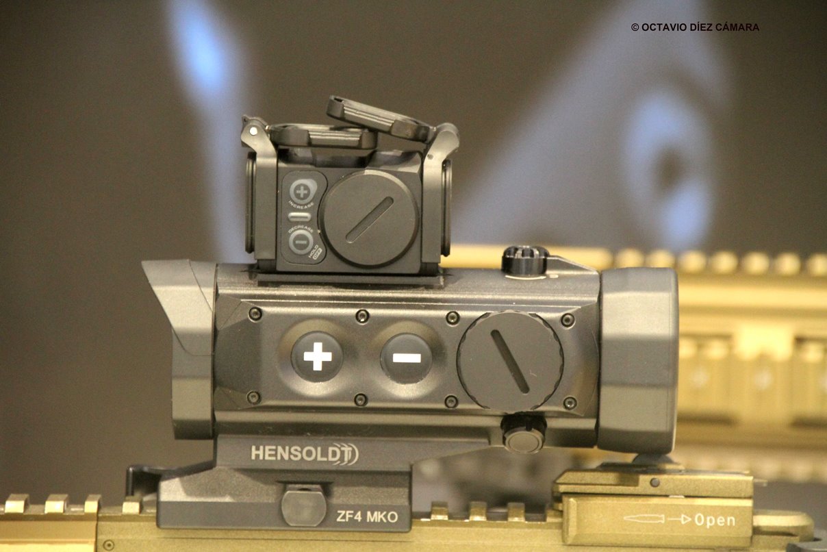 Este visor compacto lo mostraban fijado en armas de asalto HK416 en las que se integra muy bien. (Octavio Díez Cámara)