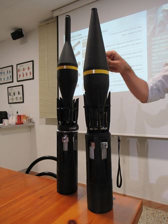 Se realizaron tres disparos con el C90 Reutilizable con munición de ejercicio CR-IN-AM de calibre completo, tres disparos de CS90-AT desde el recinto cerrado con munición de guerra, pudiendo los asistentes comprobar la capacidad del arma para operar en un espacio de 3x3 metros de superficie y 2,5 de alto de forma efectiva y sin perjudicar al operador. La sesión finalizaba con un disparo de largo alcance con un Alcotan-100 (M2) a cargo de personal de la compañía, desde el hombro y permitiendo comprobar la precisa trayectoria del ingenio a pesar del impresionante viento que estuvo presente durante todo el día. (José Mª Navarro García)