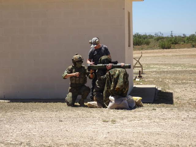Personal de Instalaza instruye al MOE con el C90 Reutilizable antes de uno de los disparos (Instalaza)