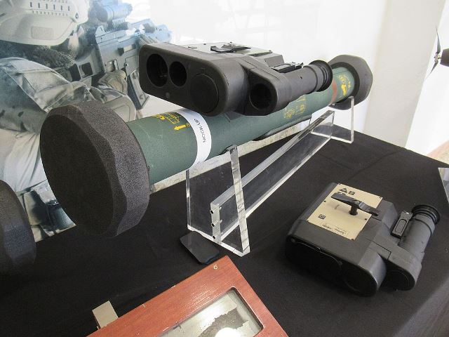 La versión actual del Alcotan-100 (M2) con su dirección de tiro (autor)